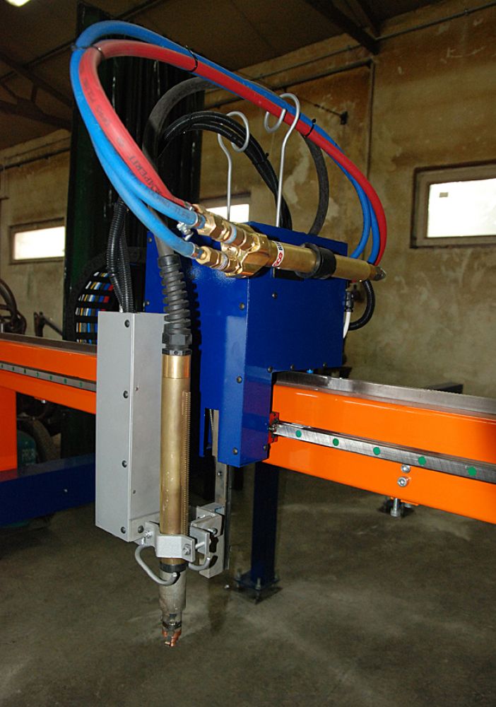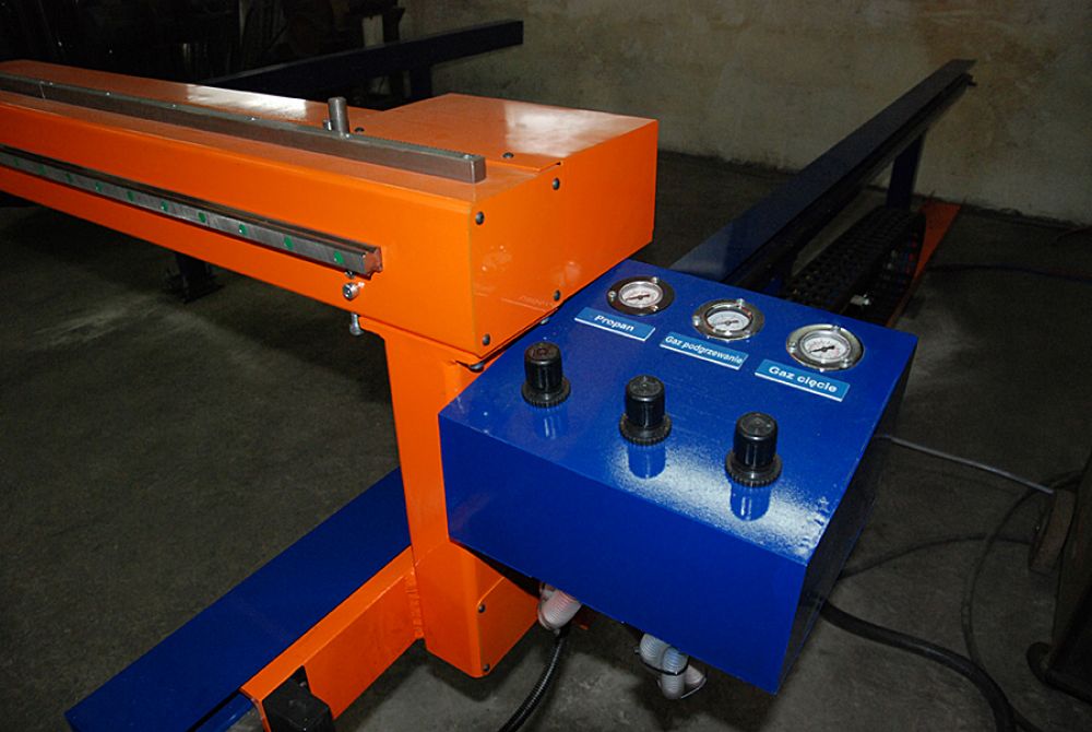 Wypalarka portalowa. Stół montowany jest tu jako oddzielny element- dzięki takiemu rozwiązaniu nawet przy cięciu bardzo grubych blach eliminujemy zjawisko odkształcania się jezdni maszyny. Portal wyposażony jest w: układ automatycznej detekcji materiału, automatyczną regulację wysokości palnika, system dwustopniowego przebijania materiału, dysk odzyskiwania systemu, układ antykolizyjny palnika oraz oprogramowanie Wrykrys. Pracą silników steruje profesjonalny sterownik CNC z komunikacją Ethernet. Konstrukcja portalu wykonana jest w całości z profili stalowych, co w połączeniu z prowadnicami firmy HIWIN pozwala na przenoszenie dużych obciążeń statycznych i dynamicznych.